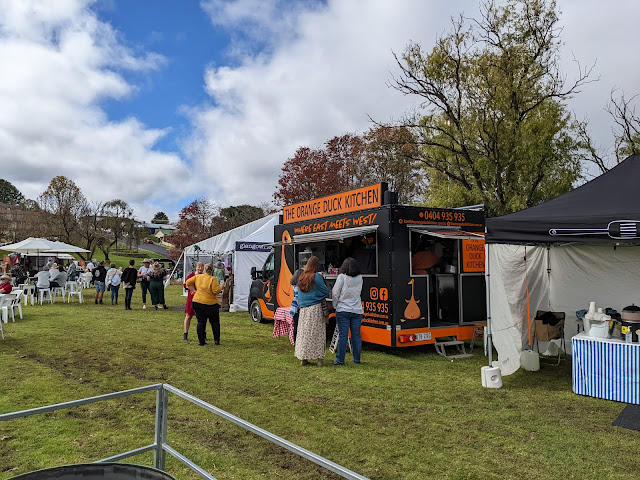 I didn't count all the businesses supplying food and drink, but my guess is that there were maybe 8 foodies and 10 local or regional breweries. The first picture below shows the Orange Duck Kitchen which ... if I'm correct! ... supplies Asian foods.